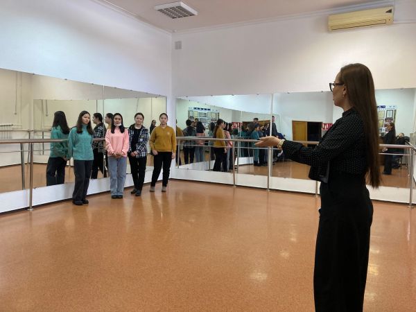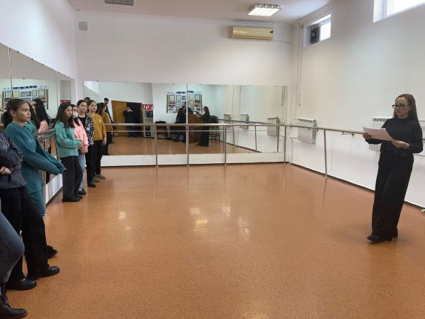 9 сынып оқушыларымен кәсіптік бағдар беру жұмысының жоспарына сай “ Тәттімбет атындағы Қарағанды өнер колледжі” би ансамбіліне саяхат жасады.