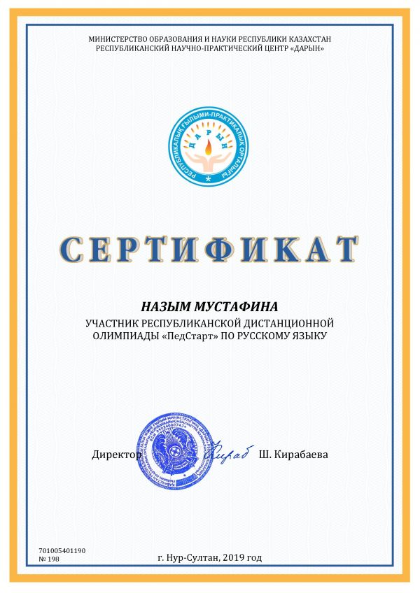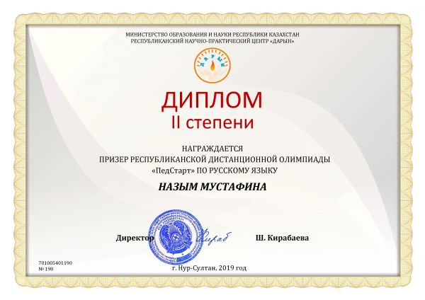 Ученицу 5 «Ә» класса Хуанар Нургуль, занявшую I место в VI международном многожанровом конкурсе-фестивале искусств «Восходящая Звезда», проводимый в рамках Международного про…