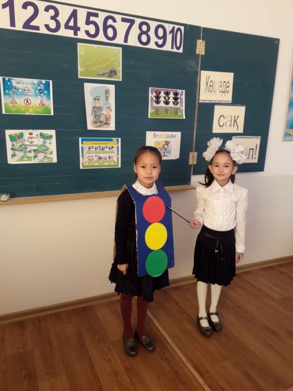 Бүгін 3"А"сыныбында "Сақта жолдың тәртібін" тақырыбында сынып сағаты өтті. Сабақтың мақсаты: 1. Оқушыларды жол белгілерімен, жолда жүру ережелерімен таныстыру. 2. Жол қауіп…