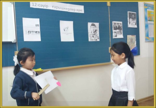 2 «ә» сыныбында «12-сәуір ғарышкерлер күні» тақырыбында сынып сағат өтті. Мақсаты: Тұңғыш ғарышкерлермен және Қазақстан ғарышкерлерімен таныстыру. Оқушылардың Отанына деген с…