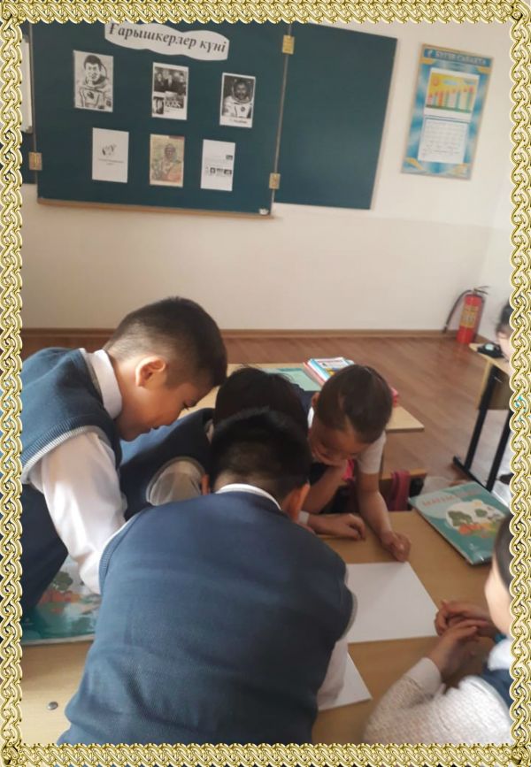 3 «А» сыныбында «Ғарышкері қазақтың» тақырыбында тәрбие сағаты өтті. Мақсаты: Оқушыларға қазақтың мәртебесін көкке көтеріп жүрген, ғарышкер ағаларымыздың өмір тарихы туралы ж…