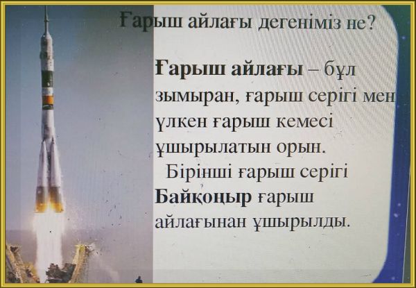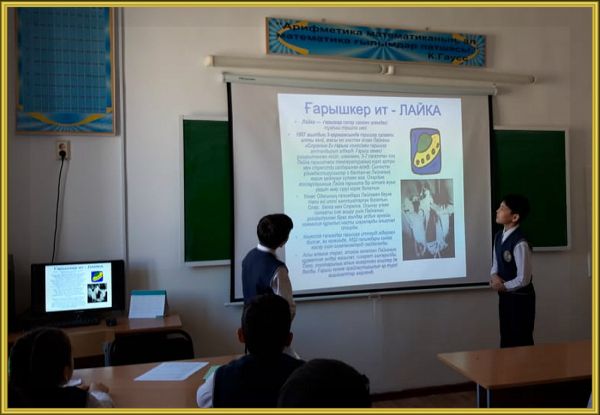 08.04.19 күні 5а, 5ә сыныбында «Ғарыш әлемінде» тақырыбында сынып сағаты өтті. Мақсаты: Оқушыларды қазақтың қос ғарышкерімен таныстыру, өмірбаянына шолу жасау, мәлімет беру. Отанға деген…