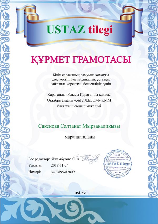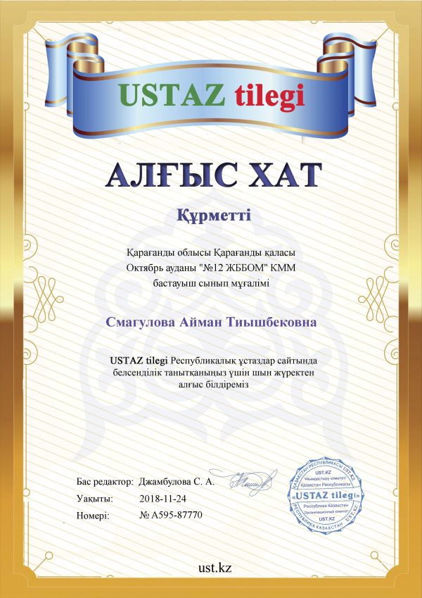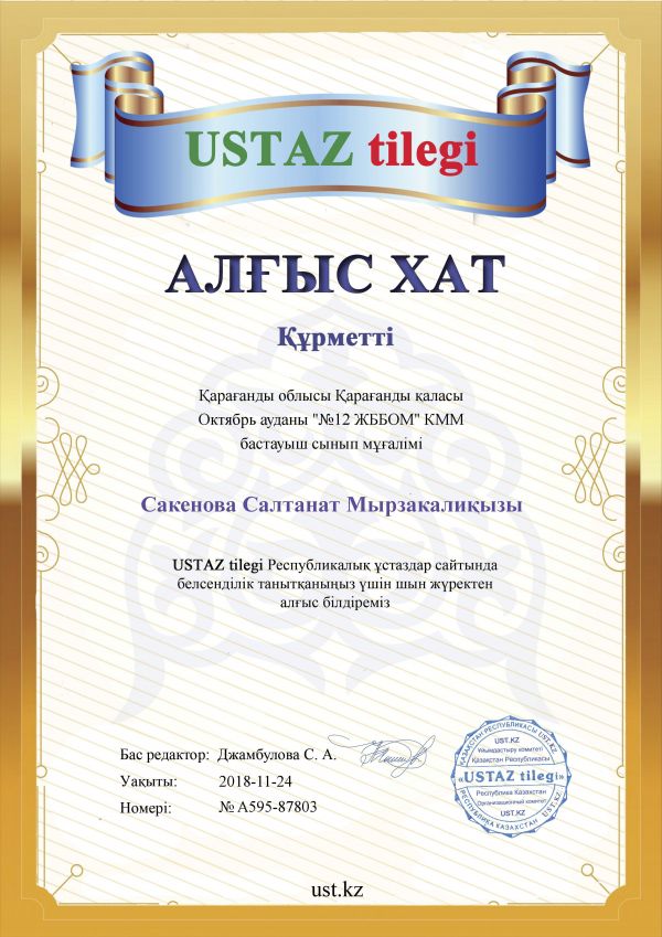 10 желтоқсан күні 9 "Б" сыныбында 16 желтоқсан Тәуелсіздік мерекесіне орай "Менің Қазақстаным - Менің болашағым" атты тақырыпта сынып сағаты өткізілді. Сынып сағатының мақсаты: о…