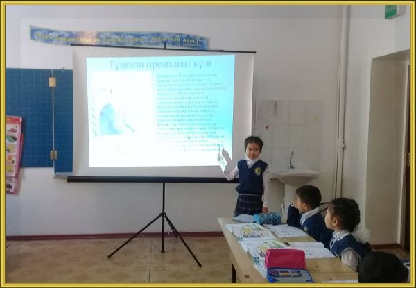 26.11.18ж 1 ә сыныбында менің тұңғыш Президентім атты сынып сағаты өтті.