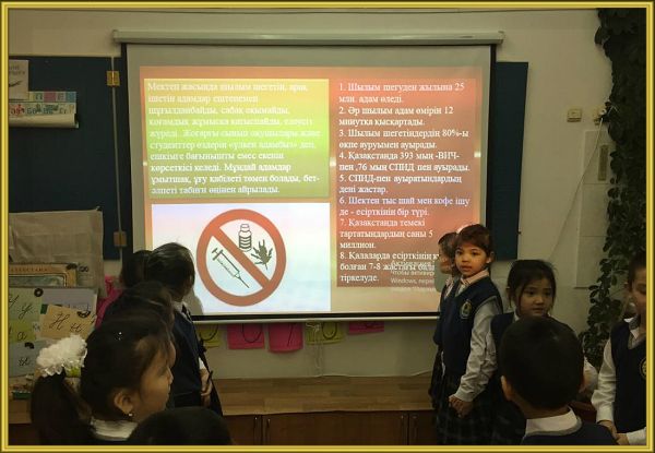 19.11.18 жыл «№12 ЖББОМ» КММ-ның 1 а сыныбында сынып сағаты өтті . Сабақтың тақырыбы: «Біз нашақорлыққа қарсымыз».