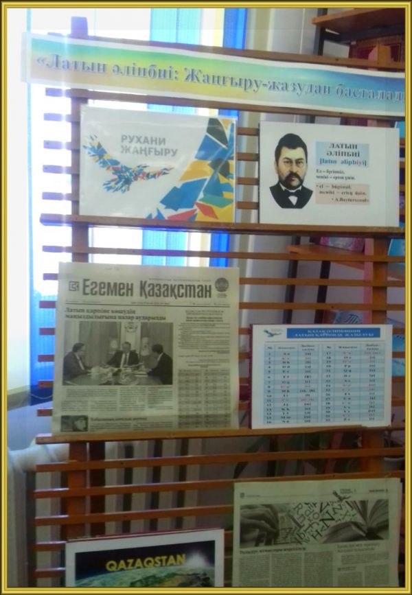 Кітапханада «Жаңғыру жазудан басталады » атты ақпараттық бұрыш жасақталды. Мемлекеттік тілдің латын графикасындағы әліпбиінің бірыңғай стандартын енгізуге байланысты матери…