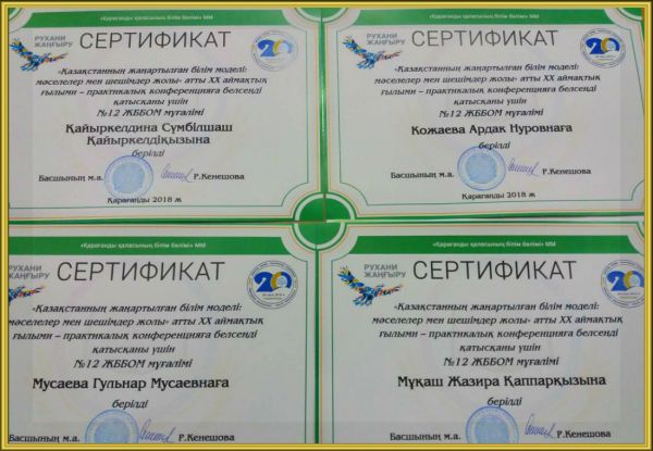 1. «Қазақстанның жаңартылған білім моделі: мәселелер мен шешімдер жолы» атты ХХ аймақтық ғылыми – тәжірибелік конференциясында жаратылыстану-математикалық пәндер…