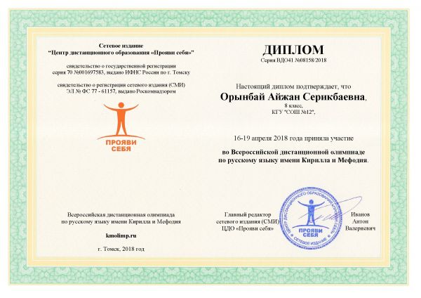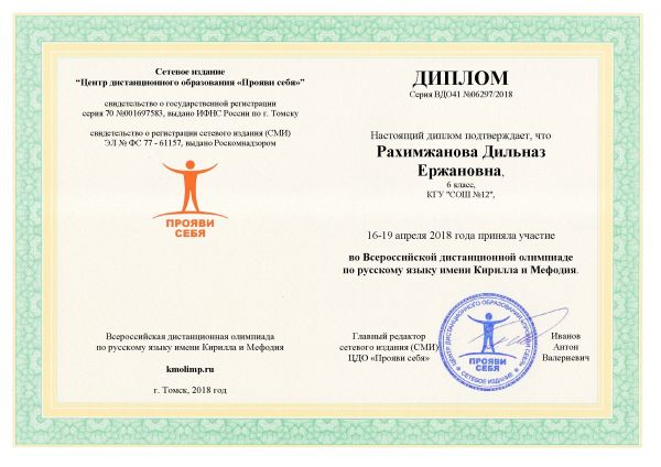 16-19 апреля 2018 года прошла Всероссийская дистанционная олимпиада по русскому языку имени Кирилла и Мефодия, в которой приняли участие и наши ученики, ставшие пока дипломантами, но, думаю, в сле…