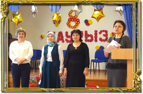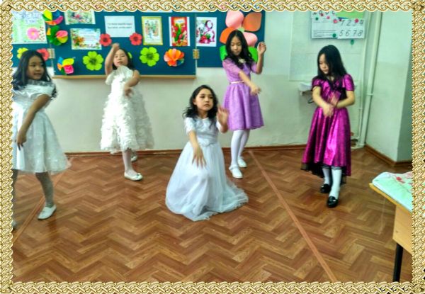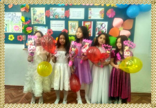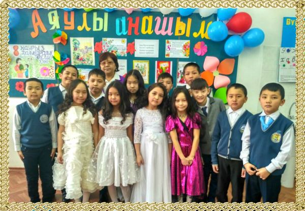 4«В» сыныбында  «Аяулы анашым» тақырыбында сынып сағаты өтті.  Сабақтың мақсаты: Ана жайлы тамаша сөздер, өлеңдер, әндер арқылы аналар мен әжелерді мерекемен құттық…