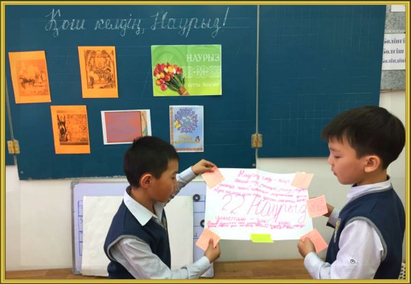 12.03.2018 ж  күні «Наурыз –жыл басы» атты  1«Б» сыныбында сынып сағаты өтті. Мақсаты: Наурыз мейрамы туралы түсінік беру. Балалардың ойлау, қабылдау, зе…