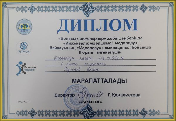 «Synergy» және облыстық оқу- әдістемелік орталығының ұйымдастырумен 27.02.2018 ж. күні өткен «Болашақ инженерлер» жоба шеңберінде облыстық «Инженерлік үшөлшемді моделде…