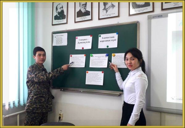 Бүгің 01наурызда 10 А сыныбында Азаматтық қорғаныс күніне арнайы тәрбие сағаты өтті. Сабақтын мақсаты: Жеке қорғаныс құралдарын білу, оларды пайдалануды үйрету. Төтенше жағдай кезінде өзін-өзі қорға…