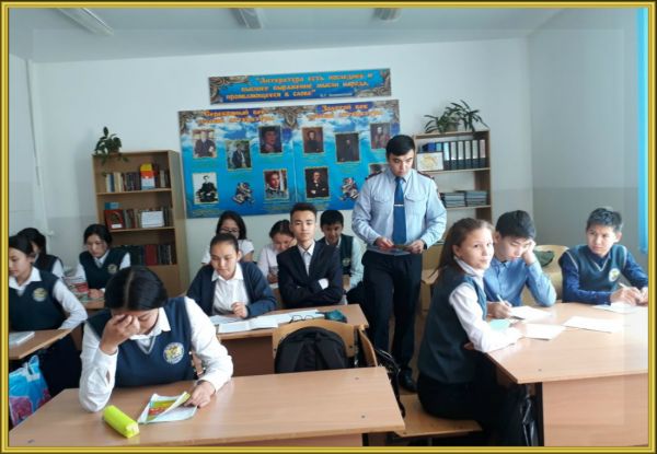 КТІЖ инспекторлары полиция лейтенанты Турсынов Жалғас Мейрамұлы және мектеп инспекторы Сатбаев Абылай Жумабекович 10-11 сынып оқушылармен құқық бұзушылықтың алдын-алу мақсатында әңгіме-сұхбат жүргіз…