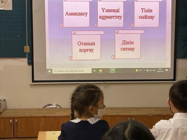 3“А” сыныпта “Ұлттың ұлы ұстазы” тақырыбында сынып сағаты өтті.