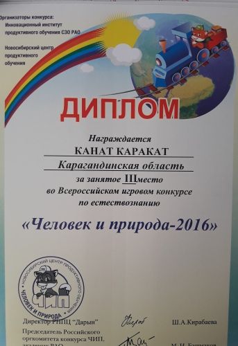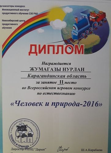 Жаратылыстану бағытындағы "Табиғат және адам тақырыбындағы конкурста орын алған төмендегі оқушыларды құттықтаймыз.