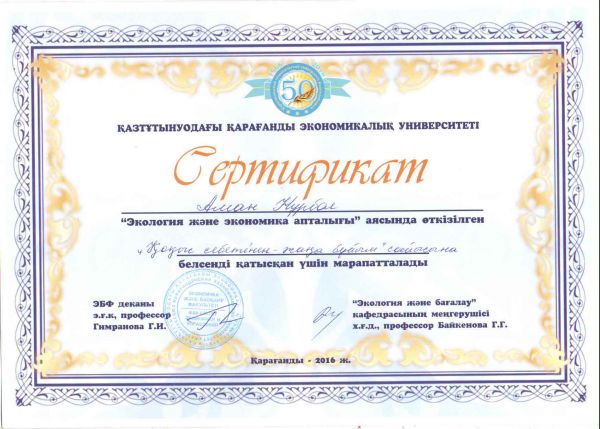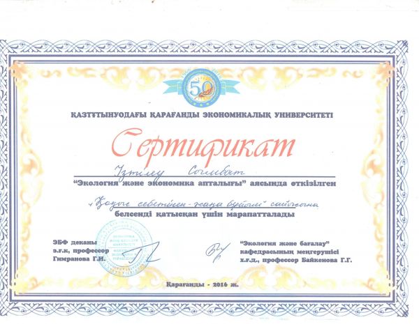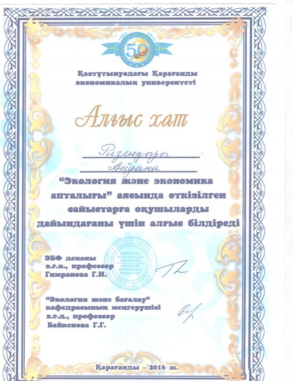 Қазтұтынуодағы Қарағанды экономикалық университетінде өткен «Экология және экономика апталығы» аясында өткзілген сайысқа 1 «А» сынып оқушысы Жандәулет Батырбаян қатысып…
