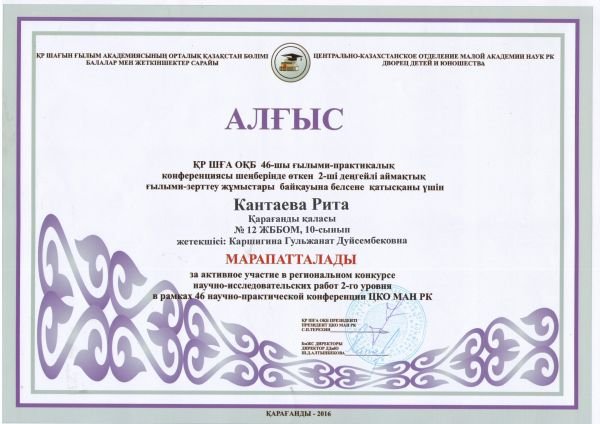 Балалар мен жеткіншектер сарайында ҚР Шағын Ғылым Академиясының Орталық Қазақстан бөлімі 46-шы ғылыми-практикалық конференциясы шеңберінде өткен 2- ші деңгейлі аймақтық ғылыми-зерттеу жұмыстар…
