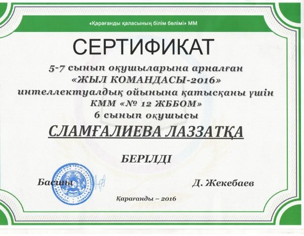 5-7 сынып оқушыларына арналған «Жыл командасы – 2016» интеллектуалдық ойнына №12 орта мектептің 5 сынып …