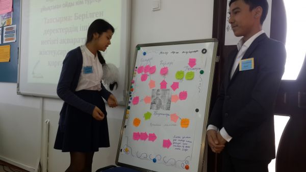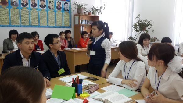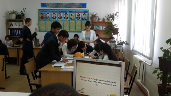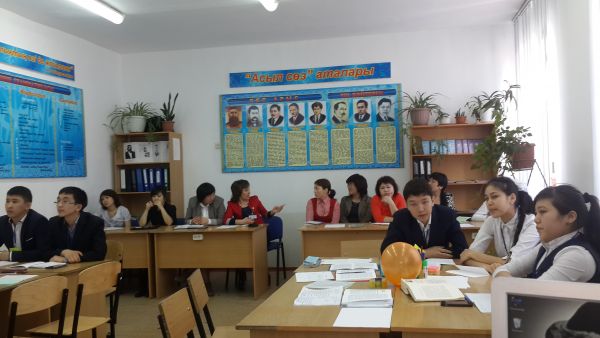 09.04.2015 күні №12 ЖББОМ-да «Жаңашыл оқыту-әдіс- тәсілдерін оқу процесінде қолдану» мақсатында 10 «В» сыныбында қа…