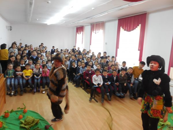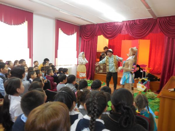 17.04 №12 ЖББОМ жиын залында С.Сейфуллин атындағы Қарағанды облыстық драма театры "Қаладан келген қыз" ертегісін 0-6 сыныптарға және "Табалдырығыңа табын" драмасын 7-11 сынып оқу…