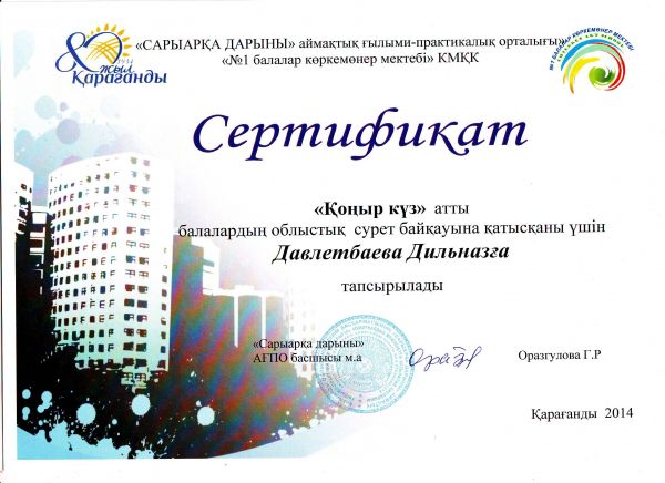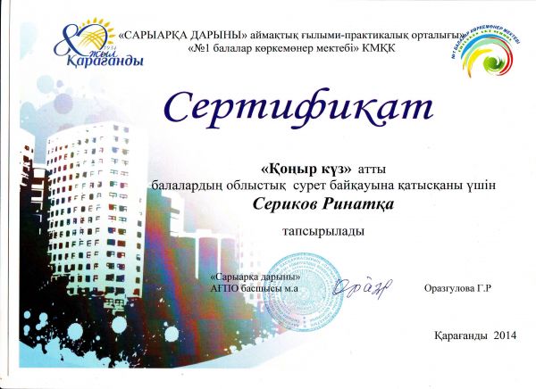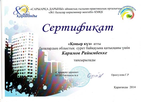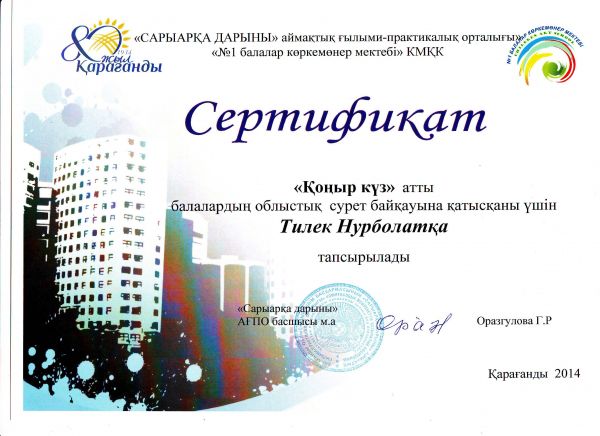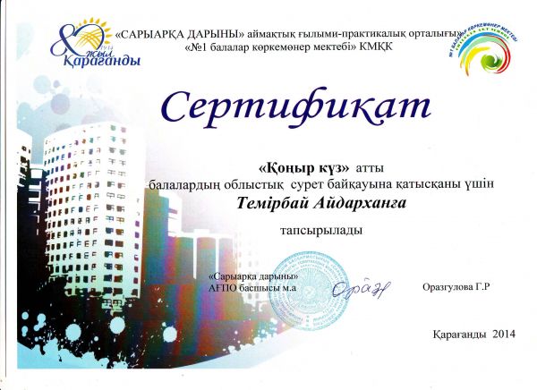 Қалалық ағылшын пәнінен өткен бастауыш сынып олимпиадасына қатысып, сертификат алған 2"А" сынып оқушысы Қасқатай Айшаны құттықтаймыз!!!
