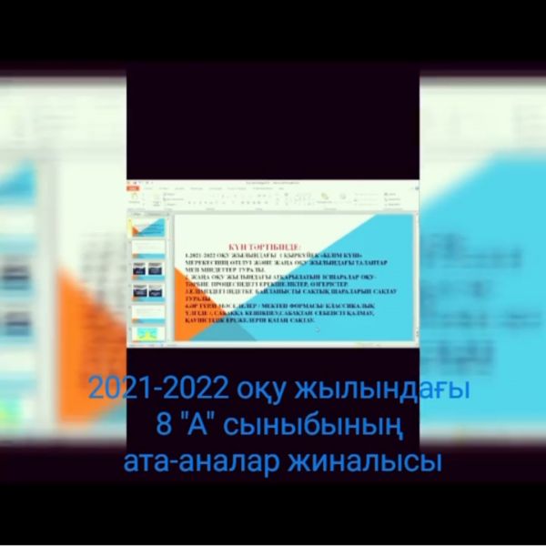 31.08.21ж 8"А"сыныбының ата-аналарымен ZOOM платформасында жаңа оқу жылыны ұйымдастыру жұмыстары жөнінде ата-аналар жиналысы болып өтті.