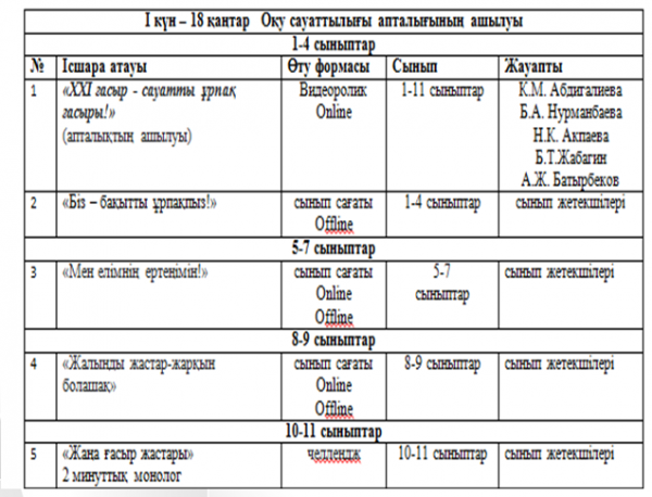 2021 жылы 14 қаңтарда қалалық «Медицинаға қадам» жобасы аясындағы ақпараттық блог жұмысына 9 А сынып оқушысы Аубакирова Ақерке "Қорғаныш киімдерін қолдану ережелері",&nbs…