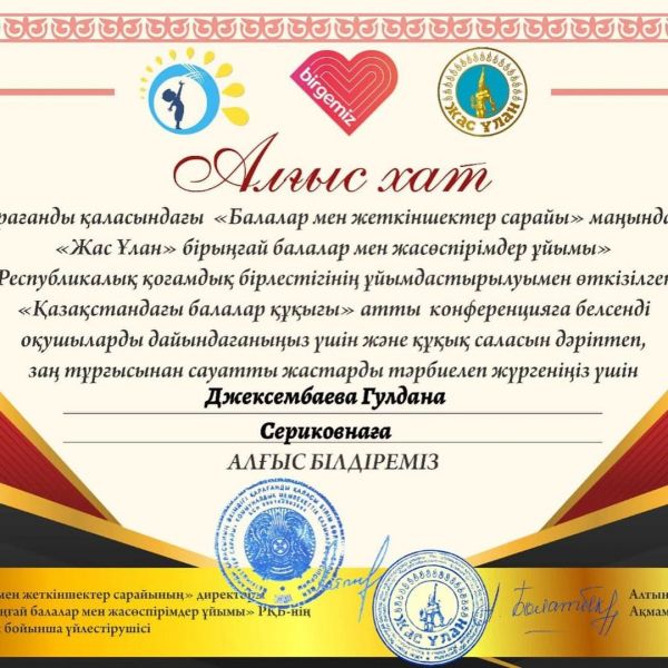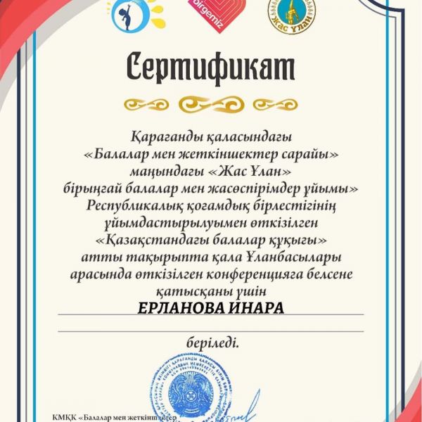 4 "Ә" сынып оқушысы,Сапаралы Құралай. Құттықтаймыз!