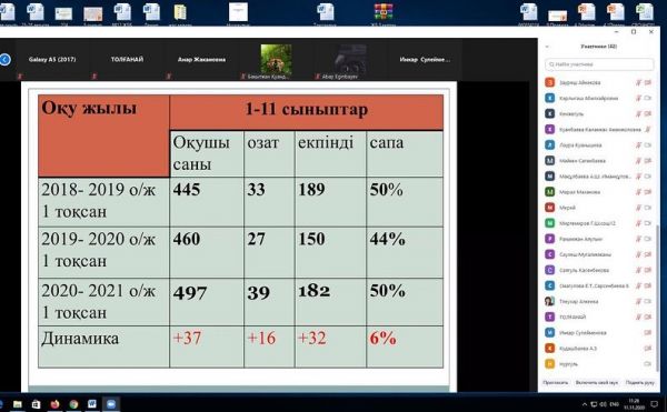 Ағымдағы оқу жылының 14.11.20 күні 10 "ә" сыныбының кезекті сынып жиналысы өтті. Сынып жиналысында қаралған мәселелер