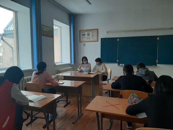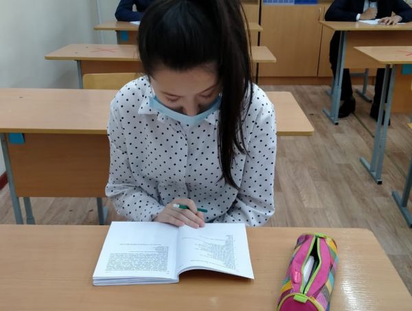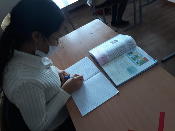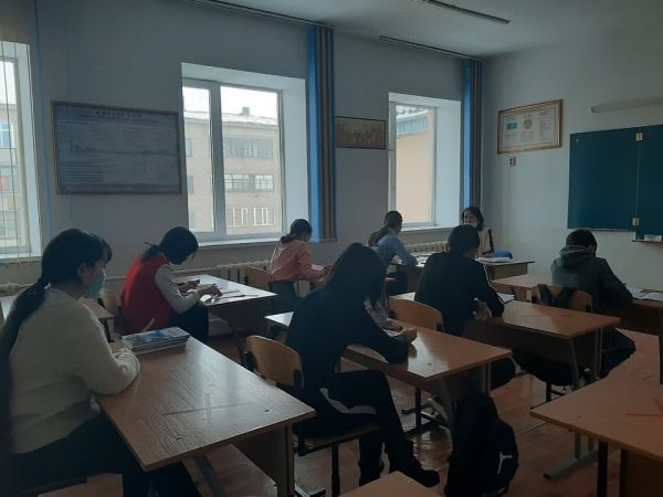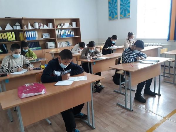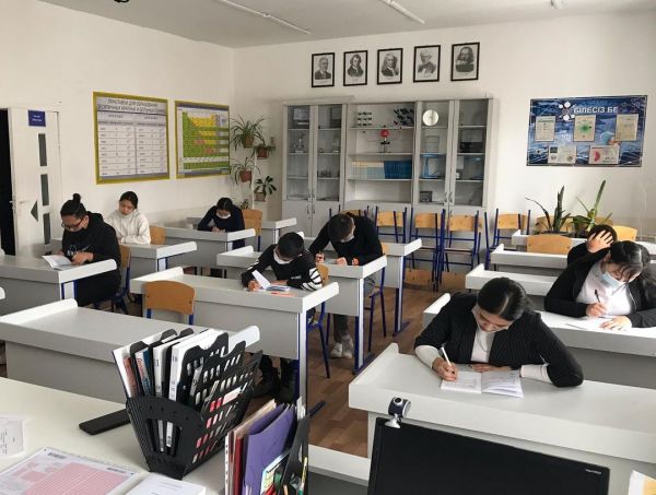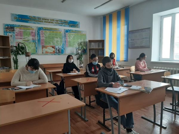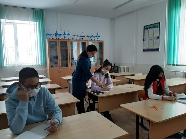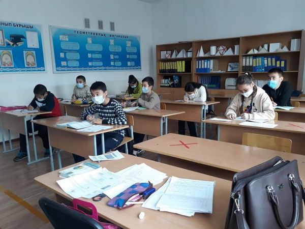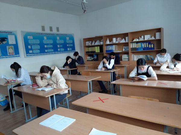 Шектеу шаралары кезеңінде санитарлық талаптарды қатаң сақтай отырып 11 сынып оқушыларының білімін тексеру мақсатында тест алынды.