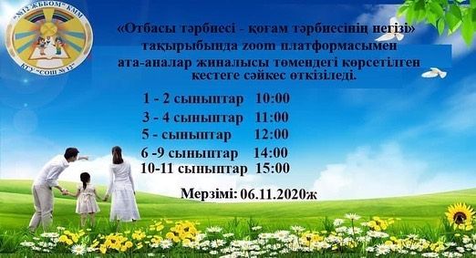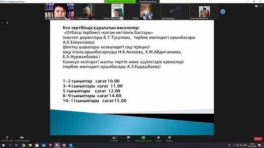 06.11.20 ж. күні сағат 14.00-де ZOOM платформасында 6-9 сынып ата-аналарымен мектеп әкімшілігі жиналыс өткізді.