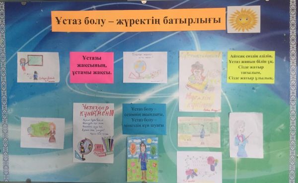 Мектебімізде «Оқу шаттығы» жобасы аясында 1-4 сыныптар арасында «Ұстаз болу-жүректің батырлығы» тақырыбында сурет көрмесі ұйымдастырылды.