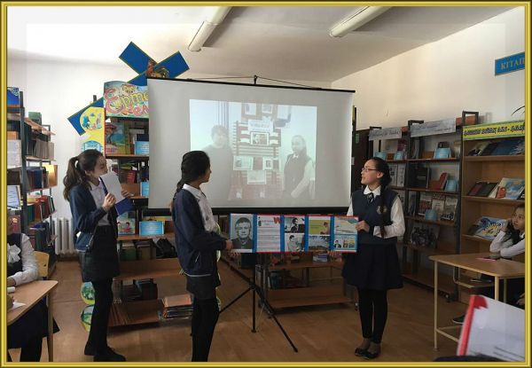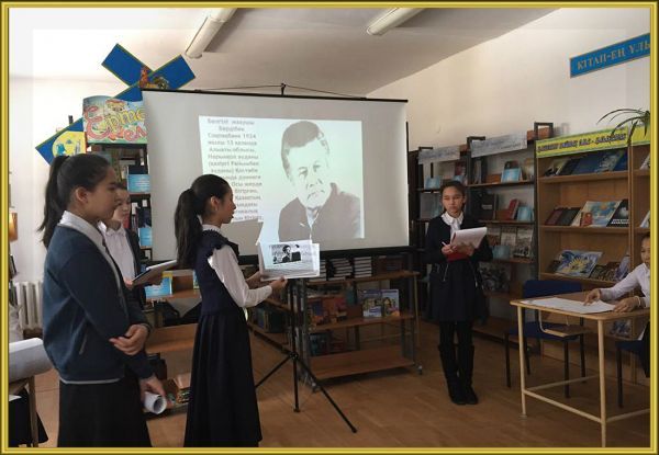 Мектеп кітапханасында 8- 9-сыныптары арасында «100 кітап» жобасы аясында Б.Момышұлының «Ұшқан ұя» және Б.Соқпақбаевтың «Балалық шаққа саяхат» кітаптары бойынша &l…