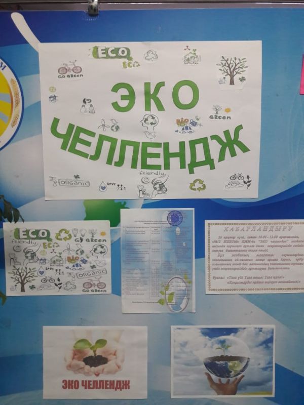 «Eco-Challenge» жобасы аясында мектебіміздің бірінші қабытында ақпараттық стенд ұйымдастырылды.