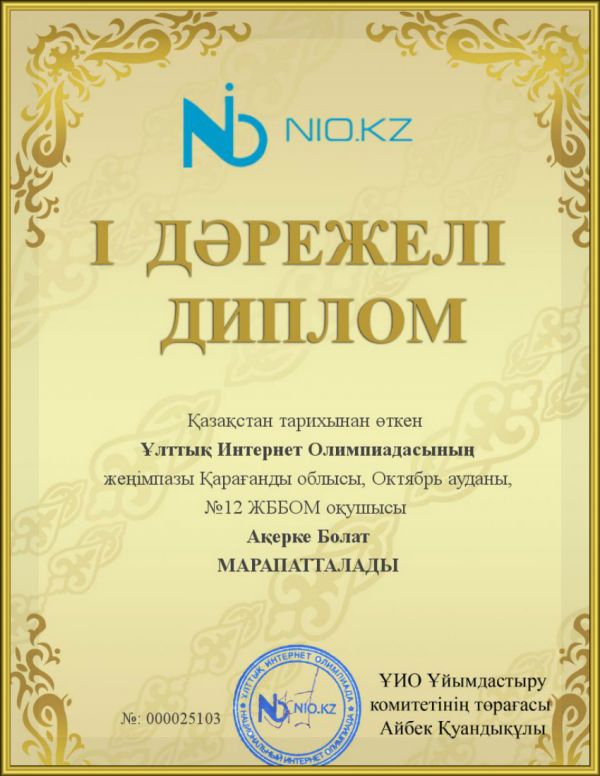 NIO«Ұлттық интернет олимпиада» өткізіп жатқан жалпы пәндер олимпиадасына №12 ЖББОМ оқушылары қатысып, жүлделі орындарды иеленді.Олимпиад…