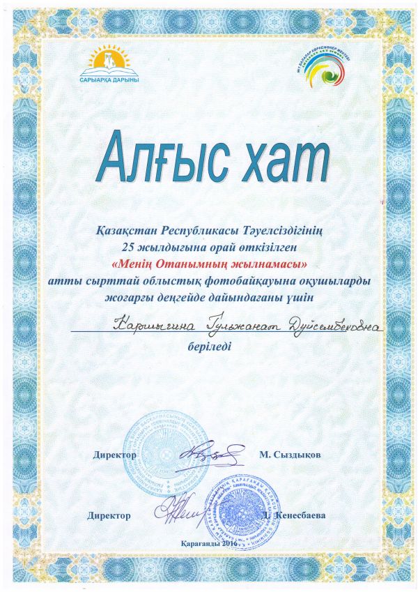 «Сарыарқа дарыны» аймақтық ғылыми-практикалық орталығы ұйымдастырған Қазақстан Республикасы Тәуелсіздігінің 25 жылдығына орай өткізілген «Менің Отанымның жылнамас…