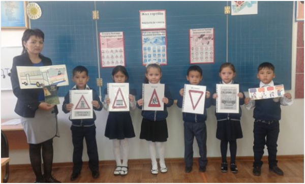 «Жол қауіпсіздігін сақтау» айлығы аясында 1 "А" сынып оқушыларымен «Абайла, бағдаршам!» тақырыбында …