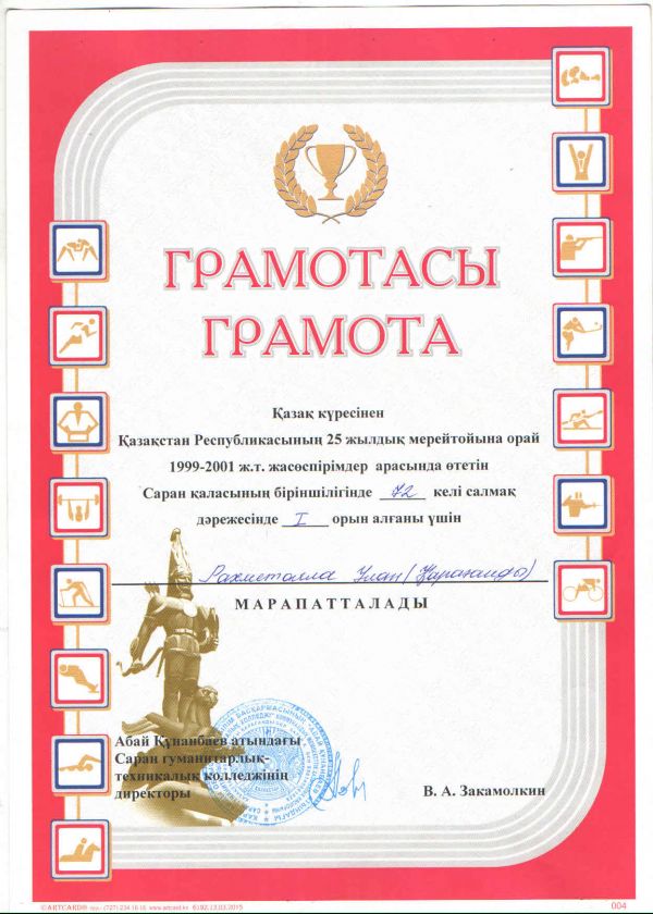 Сарань қаласында өткен ҚР-ның 25 жылдық мерейтойына арналған қазақ күресі біріншілігіне қатысып, жүлде алған мекте…