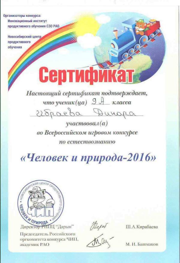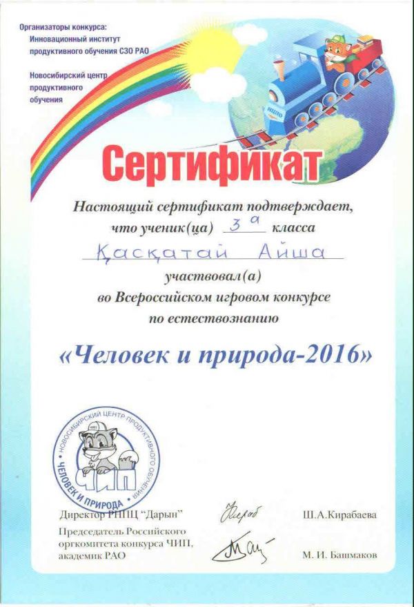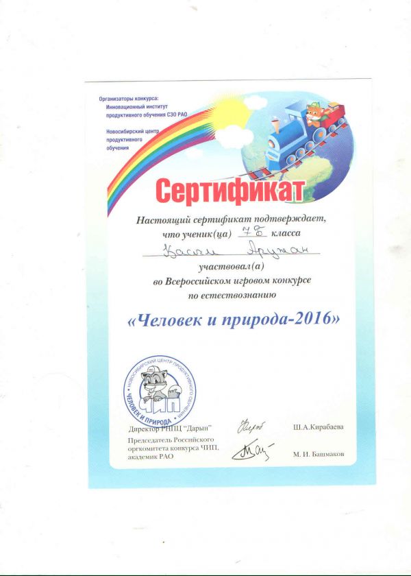 «Адам және табиғат – 2016» сайысына қатысқан оқушыларды сертификаттарымен құттықтаймыз.