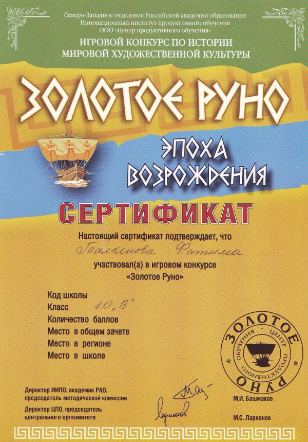 Поздравляем участников международного конкурса "Золотое руно" с сертификатами!
