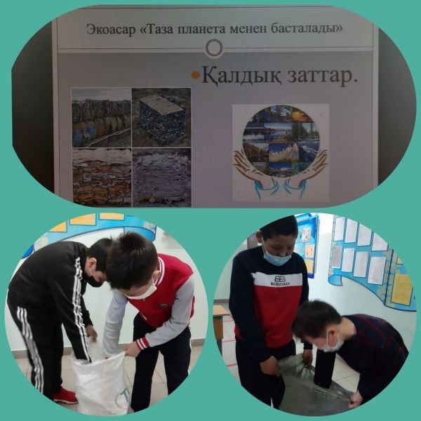 21 сәуір күні 7"А", "Б" сынып оқушылары "Жасыл Қазақстан" экологиялық сауаттылық" апталығы аясында "Тұрмыстық қатты қалдықтарды бөлек жинау" тақыры…
