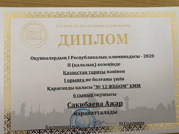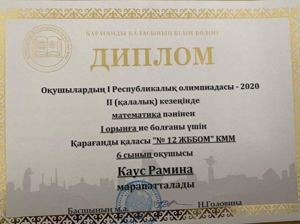 Оқушылардың І Республикалық олимпиадасы - 2020 ІІ /қалалық/ кезеңінде орын аған оқушыларымызды ҚҰТТЫҚТАЙМЫЗ!!!