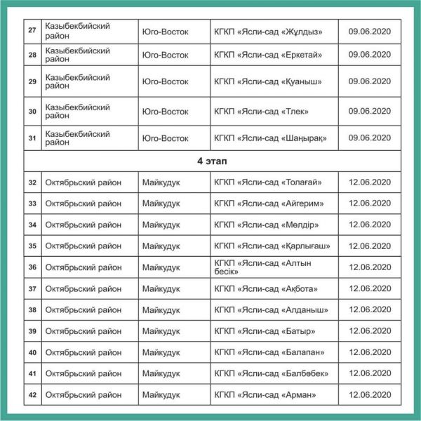 12 маусымнан  бастап 2017 жылы туған балалар үшін орындар ашылады. (мемлекеттік және орыс тілінде тәрбиеленетін балаларға) 2015 және 2016 жылы туған балалар үшін мемлекеттік тілдегі топтарға…