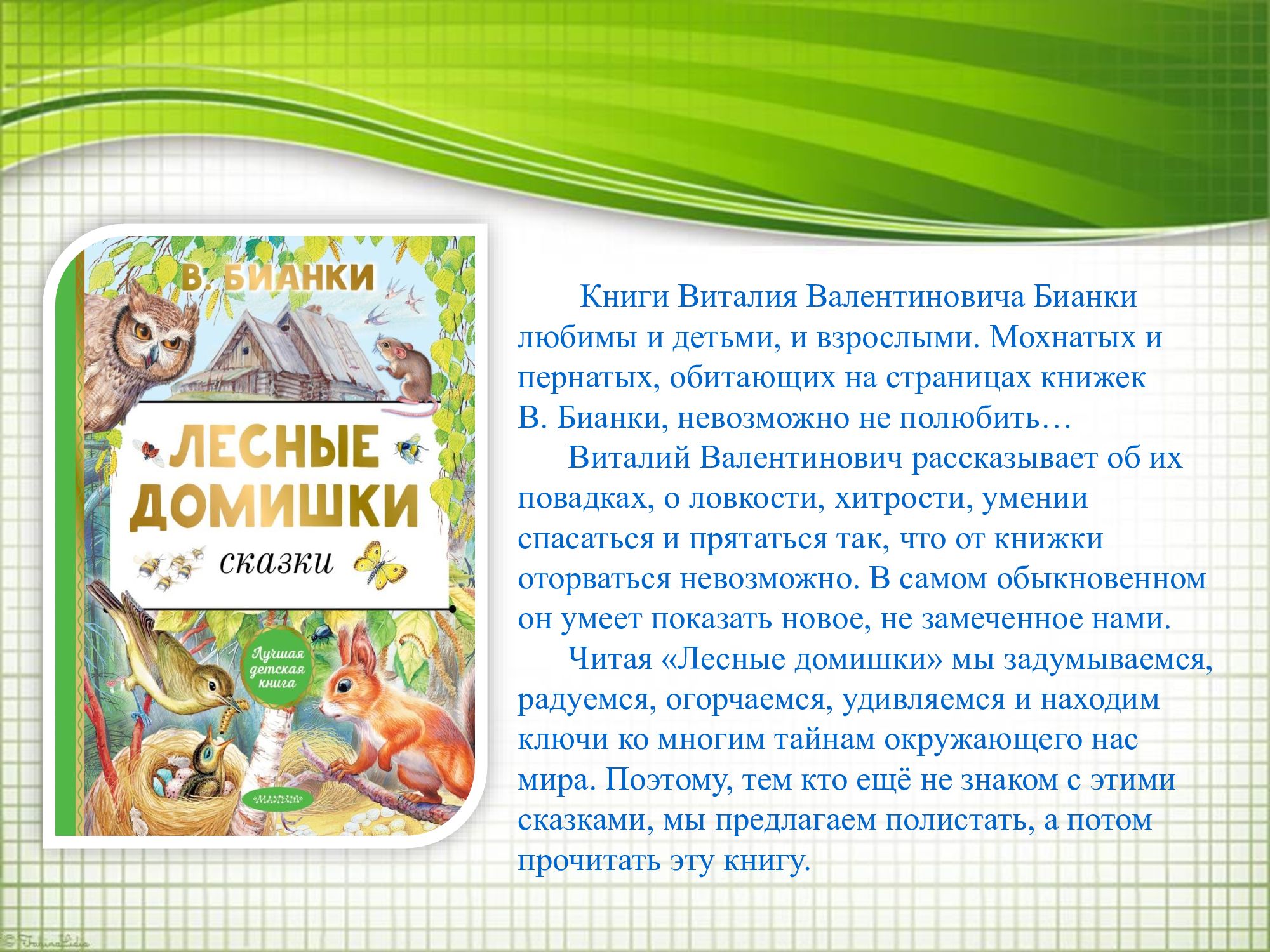 А нам уже – 100! В 2024 году исполняется 100 лет книге Виталия Бианки «Лесные домишки».