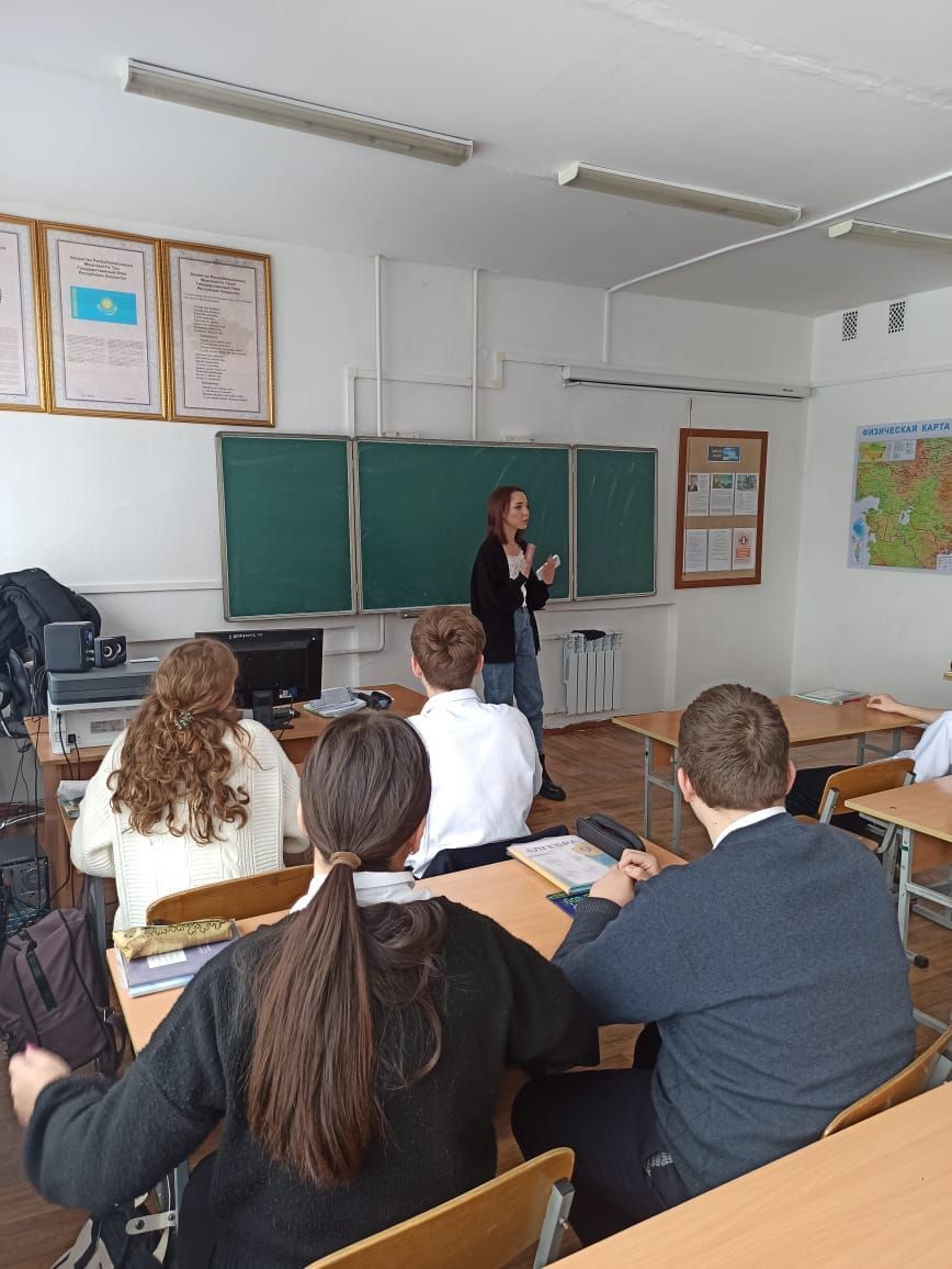 Встреча учащихся девятых классов с будущим учителем математики, студенткой КарУ им. Букетова