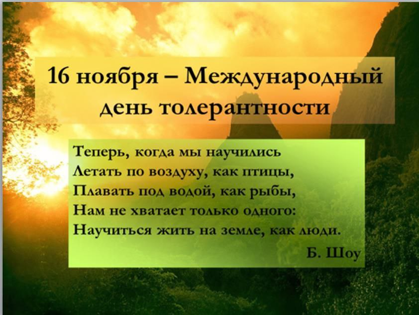 Классный час, посвящённый Дню толерантности
