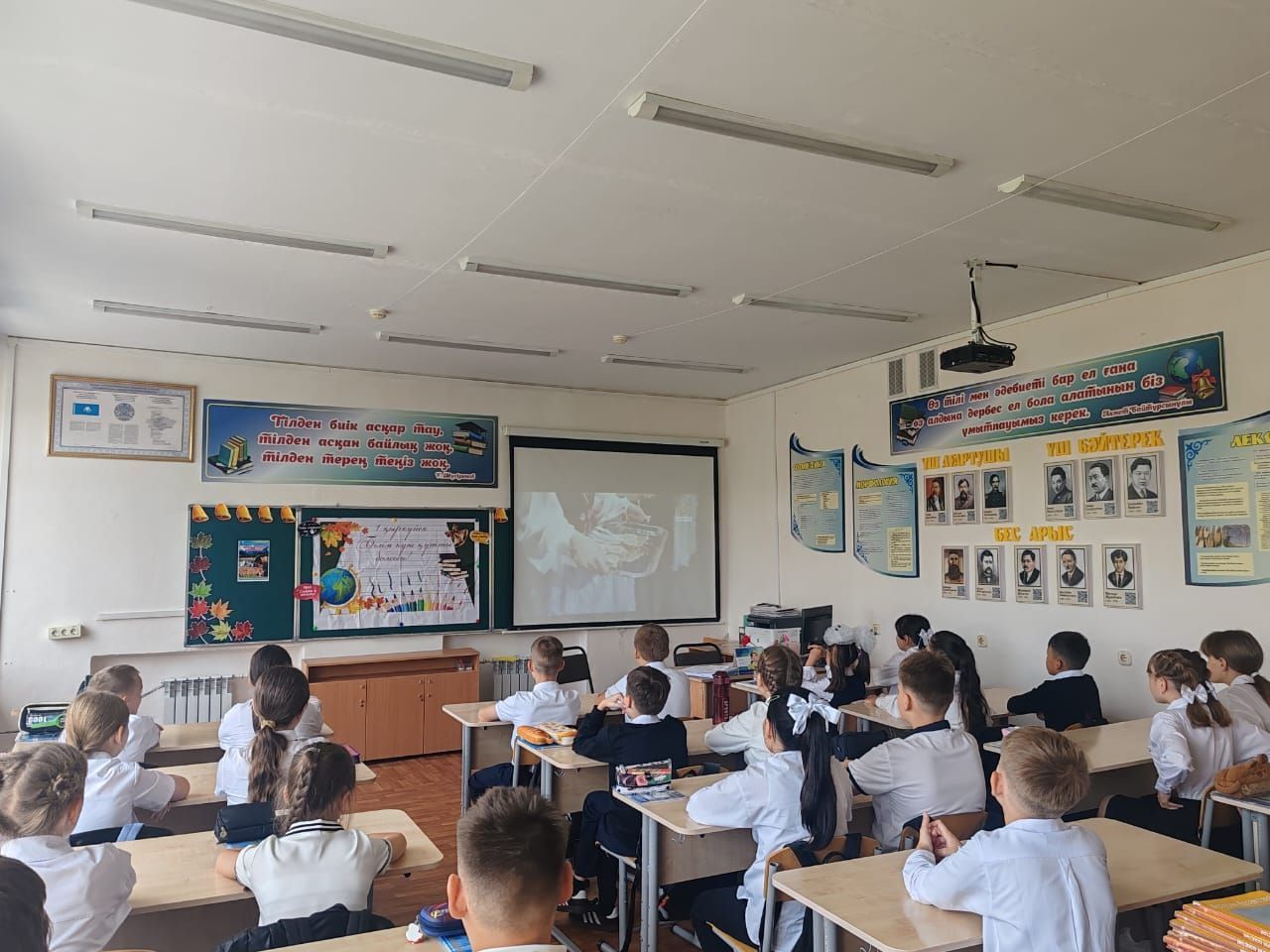 "Адал азамат" тәрбие бағдарламасы аясында 02.09.2025 жылы 7”Ә” сыныбында “Менің Отаным-Қазақстан” атты сынып сағаты өтті. Мақсаты: Жас ұрпақты Отанын сүюге, елімізд…