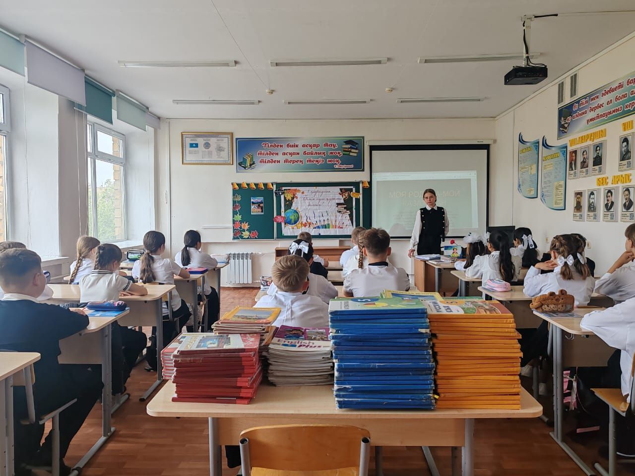 В рамках воспитательной программы "Адал азамат", в 3 "А" классе прошёл первый классный час "Моя Родина-Казахстан" в форме устного журнала-путешествия. Цель данного меро…
