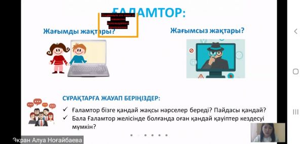 Ақпараттық сауаттылық апталыгы аясында педагог-психолог Ноғайбаева Алуа Ноғайбайқызы "Балалардың ғаламтор желісіндегі қауіпсіз мінез-құлықы "