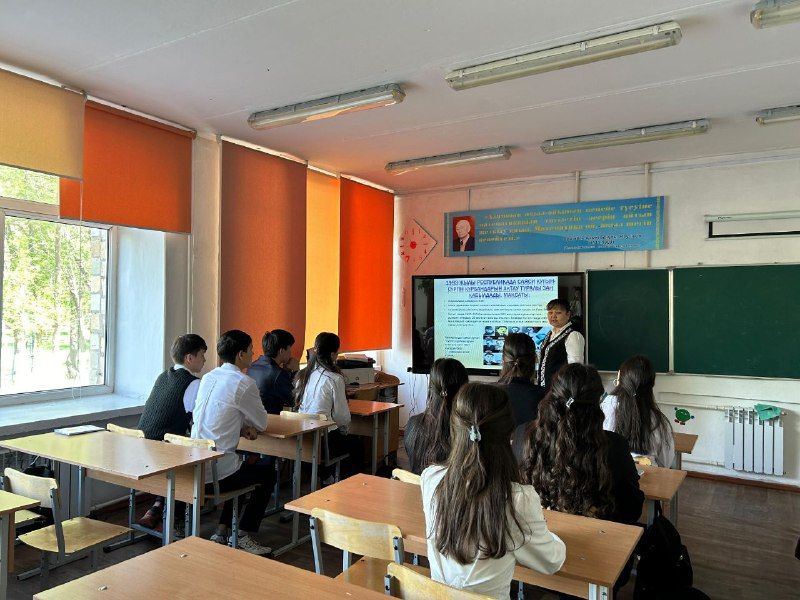 В 8"Б" классе прошёл классный час на тему: "Чистый Казахстан", посвящённый вопросам экологии и бережного отношения к окружающей среде.